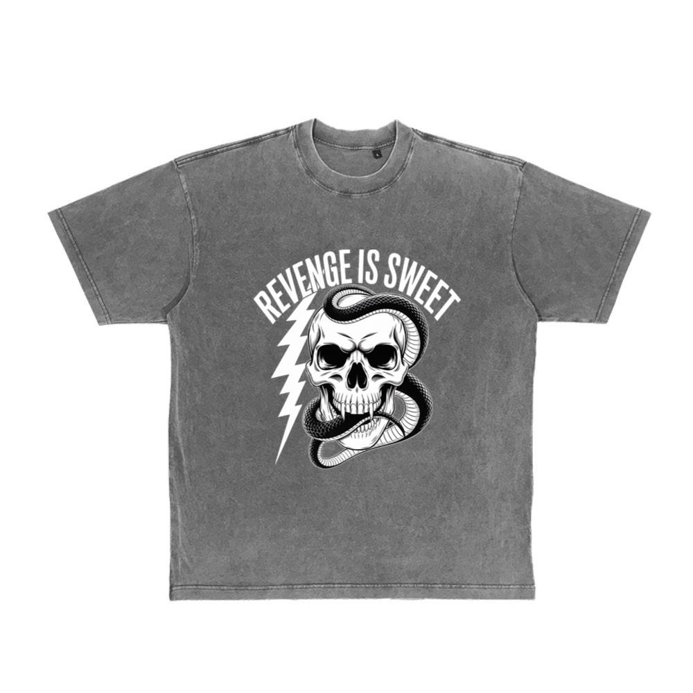 Revenge Is Sweet Skull with Snake and Lightning Graphic T-Shirt