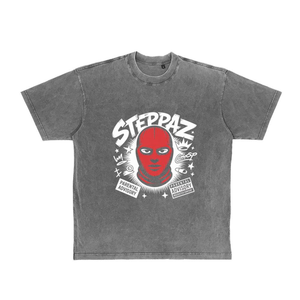Steppaz Red Mask Character Underground Street Culture Design T-Shirt