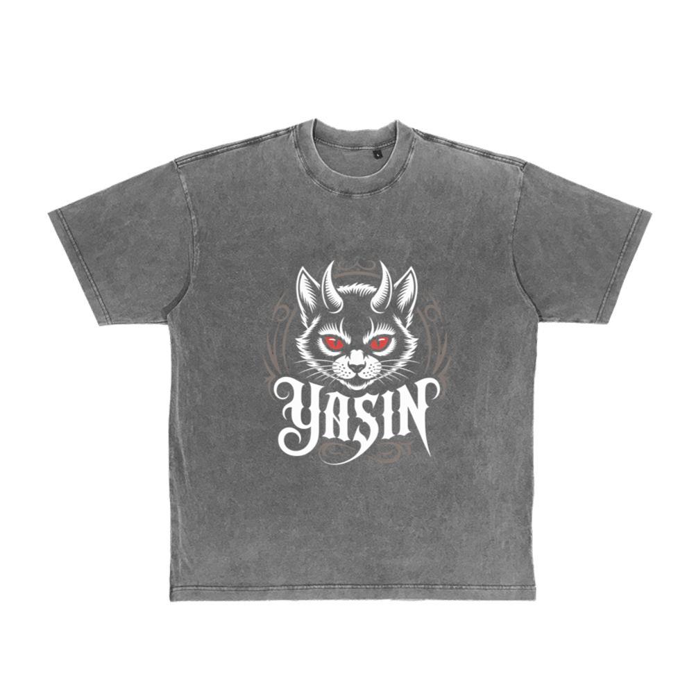 Yasin Evil Cat with Horns and Glowing Red Eyes Artwork T-Shirt